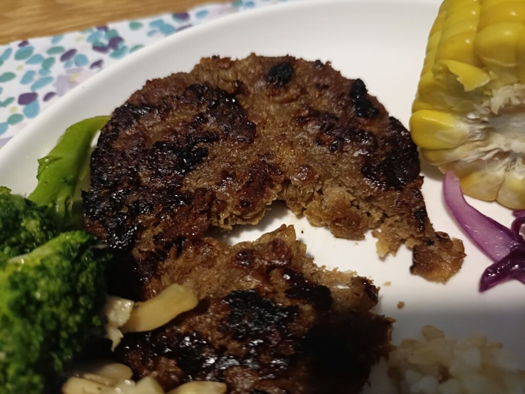 せっかくなので油なしでじっくり焼いてみたら焦げてしまった。そうか、肉じゃなかった。(一応油分としては、ココアバターやココナッツオイルが含まれている)