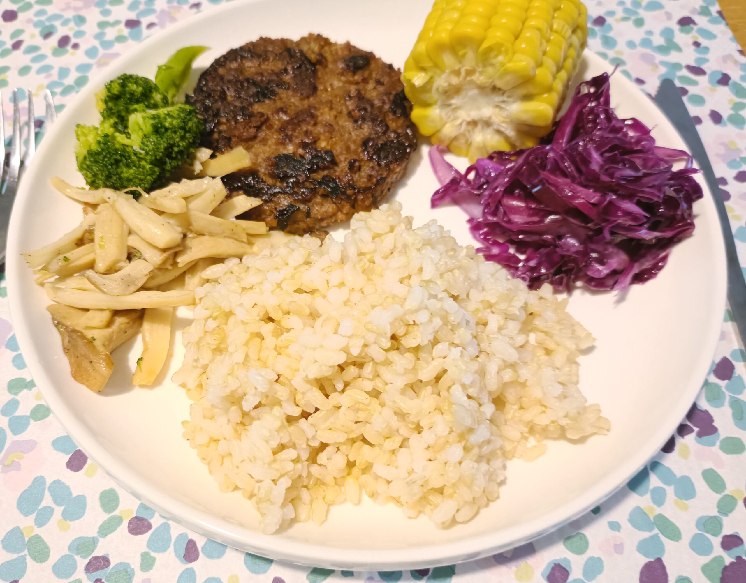 いかに牛肉に近づけるかが代替肉の醍醐味。予想通りいろんなものが入っていた。